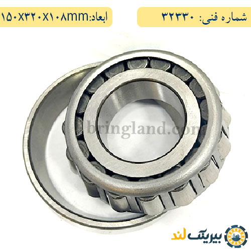 رولبرینگ 32330 با ابعاد 150x320x108mm و دارای 1 ردیف ساچمه ی مخروطی میباشد که درون یک کاپ با پهنای 114 mm قرار میگیرید. رولبرینگ مخروطی 32330 از جنس فولاد کروم ساخته شده که باعث شده مقاومت ساچمه ها،قفسه و حلقه های این بلبرینگ در برابر خوردگی بالابرورد. این رولبرینگ مخروطی در برند های skf ایتالیا، fag آلمان ، ناچی ژاپن، timken آمریکا موجود است. اطلاعات فنی این رولبرینگ را در ادامه مشاهده کنید.